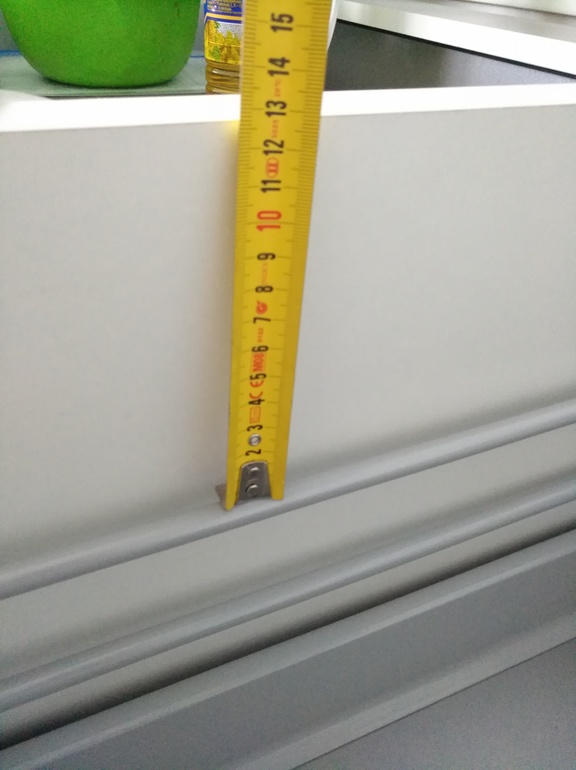 Почти 13 см. Что б ничего не задевало 12 см можно сделать + 4 см толщина столешки. Итого 16 см. Минус толщина материала.