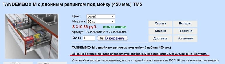 А тандем под мойку рассчитан был на 90 ширину тумбы, скорее всего. Поэтому нужно или высоту уменьшать или ширину боковых пеналов.