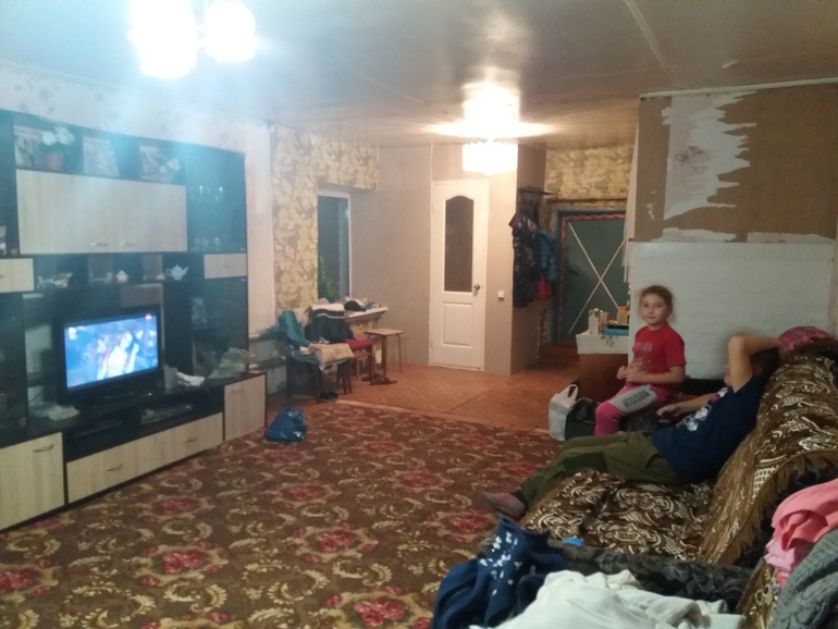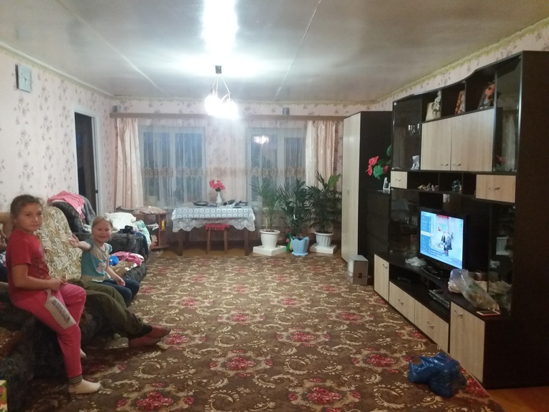 В гостиной вся мебель остается, нужно просто как то расставить. Ой, и ковер на полу тоже пока остается, финансово никак.