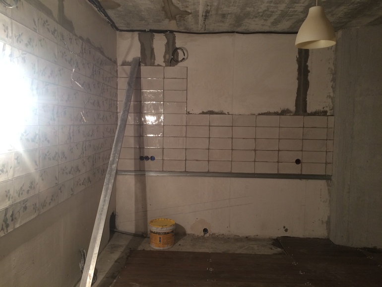 Я удивляюсь что кладут после установки кухни, насколько знаю все грязные работы плитка, обои делаются до. Мы делали до установки гарнитура...