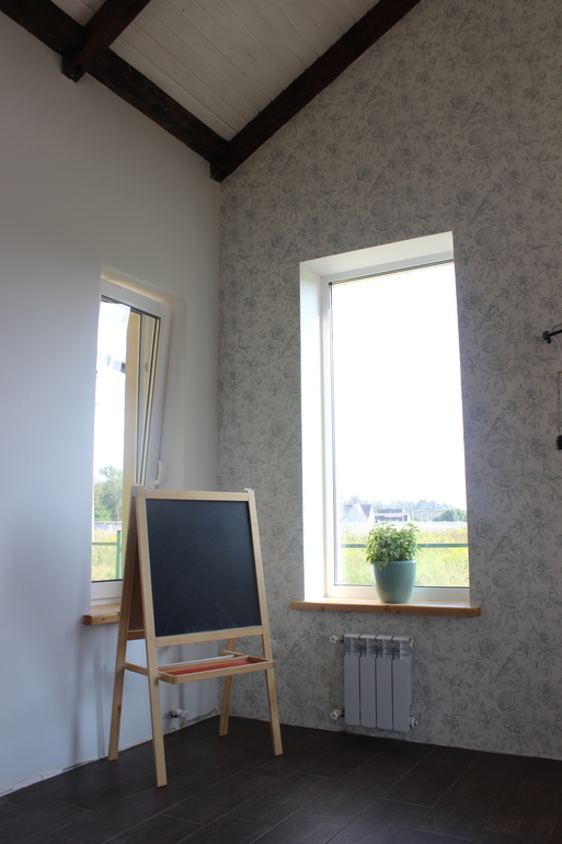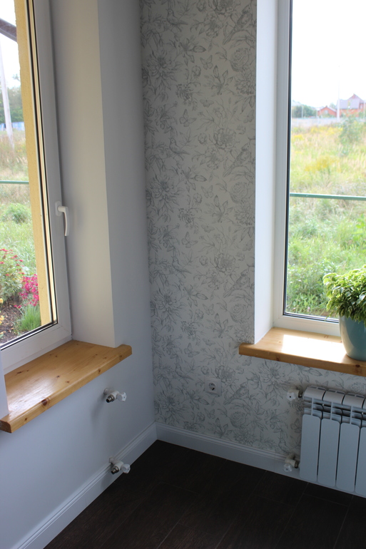 Стена рядом покрашена. Краска тиккурила колер F500 (Ангел). Он не тон в тон к обоям, я немного другие цели преследовала, но смотрится гармонично)