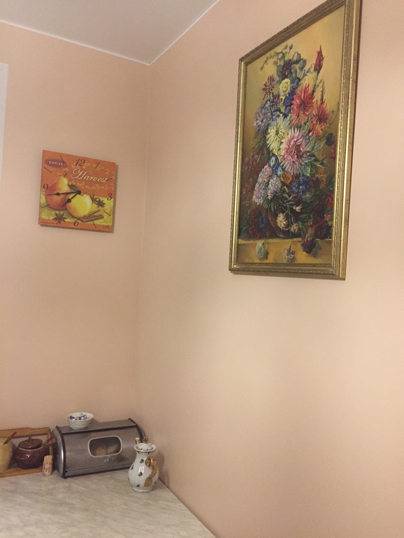 на стене рядом с окном появились часы и картина, фото ниже