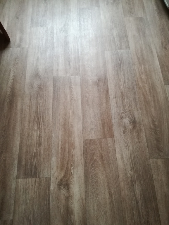 Общее российское заблуждение, что столешницу нужно делать под цвет пола, а фасады кухни под цвет двери в нее)) У Вас и так уже присутствуют три цвета дерева, а дверь, наверное, четвертый. Столешницу лучше сделать нейтральной, под светлый мрамор, например. И совсем необязательно выкладывать плиткой весь короб. Достаточно положить на высоту 20 см и на коробе и под тв. А сверху пустить карандаши, например, для завершения.