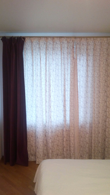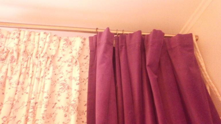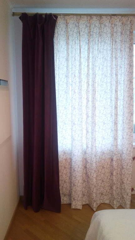 И второй вопрос про складки, что вы делаете чтобы они хорошо смотрелись когда шторы в раскрытом виде? Занавески, которые белые в цветочек имеют складку "рюмочка" как на фото ниже поэтому и в сложеном виде хороши. Но для вторых врятли такая складка подойдет т.к.они бархатные и очень плотные да и просто хочется прямую.