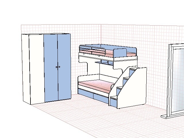 2) две кровати (тахта, как диванчики с полками) места занимают больше, но хватит как я говорю до свадьбы (плюс то что никому никуда лазить не надо, имеются ящики под кроватью для постели и игрушек, на полках можно разместить книги, а их много, нам надо разгрузить книжный шкаф, в принципе лего можно поставить и стены не пустые)