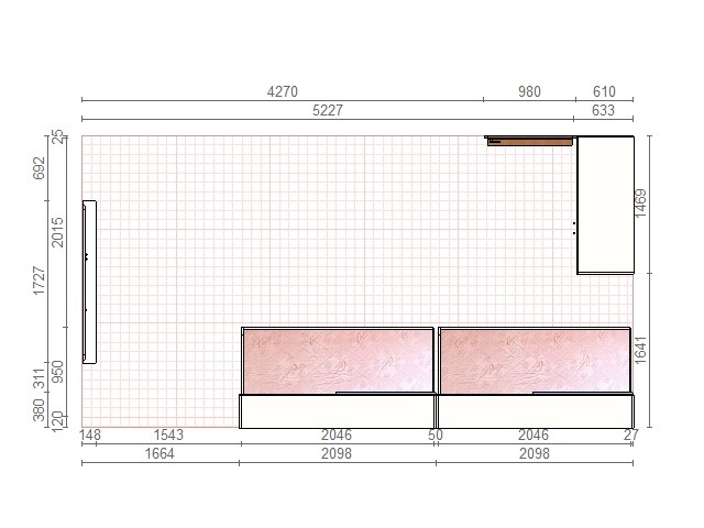 а если 2 отдельные, но вот полки во круг окна? не поместится? или вы там уже что то другое придумали?