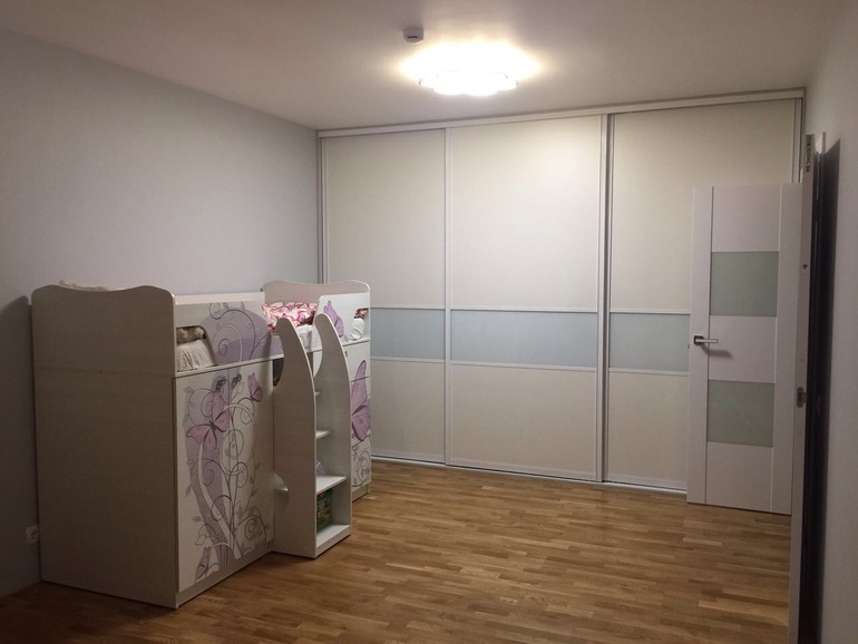 В будущем будет перегородка раздвижная светлая. В детскую часть так и просится ковер, но вот какой? На второй фото видно еще и качелю, она из Икеи зеленая.