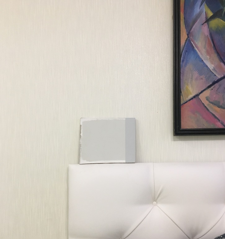 Чисто белый на той фото плинтус) а стена НЕ белая, она "off white", как раз достаточной интенсивности серого, чтобы хорошо смотреться на большой стене. Вам правильно советовали выше сделать большие выкрасы.