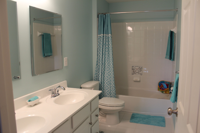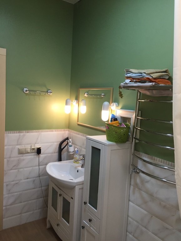 у нас с/у не большой с открытым душем, хотим где душевая плитка а с другой стороны покрасить чтоб плитка не сьела пространство