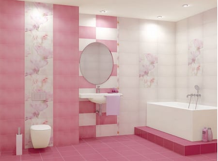 Я бы нарисовала следующие варианты: пустить полосой цветы свкрху или внизу, выделить зону плиты. А также в этой коллекции есть негирокий бордюр.