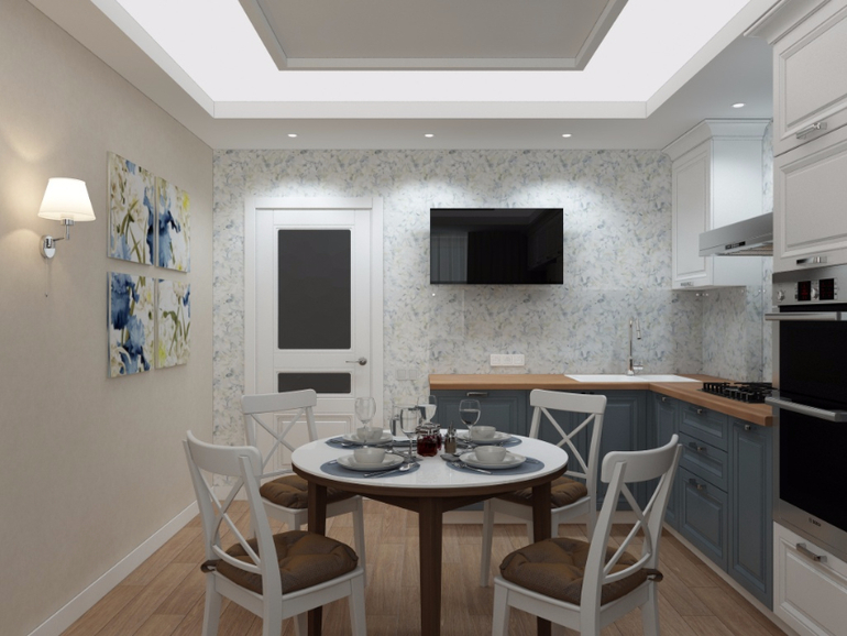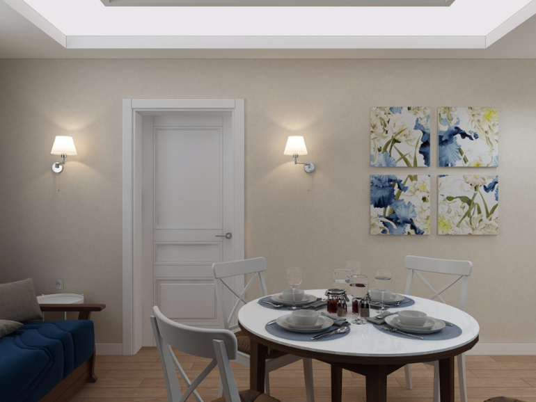 Требовалось создать кухню-гостиную на площади почти 18 кв.м. Спокойная цветовая гамма, необходимый набор мебели и проект готов.