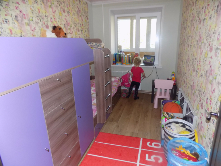 У нас тоже была детская 8 квадратов на двоих детей:) нас и на год не хватило, поменялись в итоге с детьми зал (где мы с мужем спали) 17 кв сделали детской, а сами в 8 переехали:))))