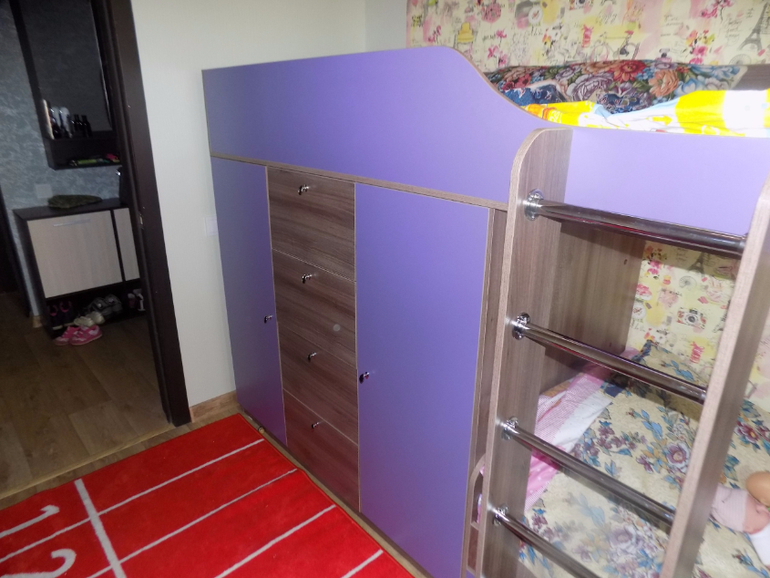 Интерьерное решение детской комнатыМы переехали 2 месяца назад. Очень долго я смотрела на детские, но у нас она маленькая. Хотела что-то необычное и удобное. Чтобы место было у детей. Вот что получилось.