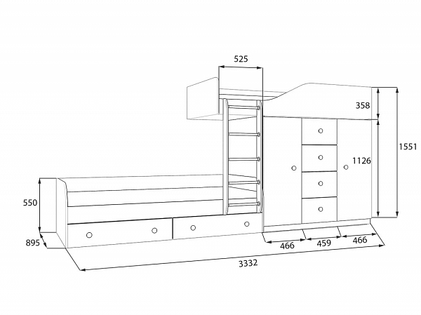 верхнее спальное место - не толще 15 см, чтобы бортик мог выполнять свою функцию