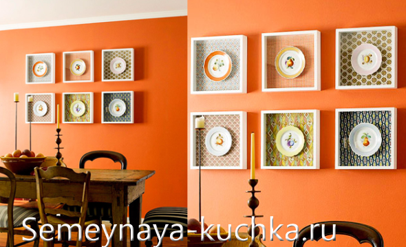 Это уж вам видней :) Прям на стену клеите молдинг - это рама. Тарелочки - содержание. Сколько будет у вас таких пространств - лучше решить вам