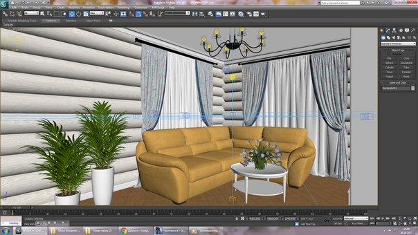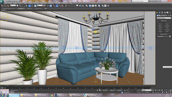 Это скрин, не визуализация. Цвета искажены. Стены белые, шторы голубые с небольшим добавлением лилового