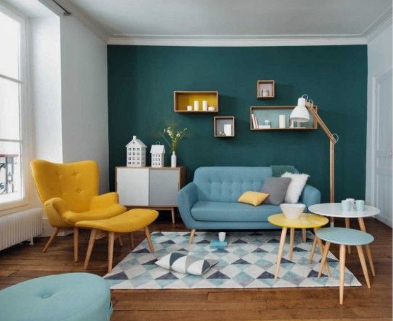 А еще полы какие? В принципе можно в тон полам диван поставить.