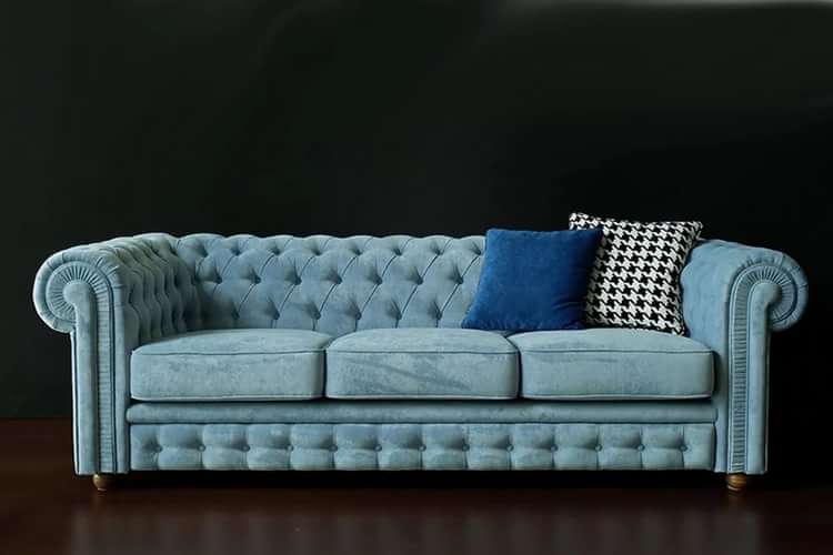 В вашей модели голубой. А так я бы взяла более классический диван и выбрала горчицу))) Модель образно для понимания)