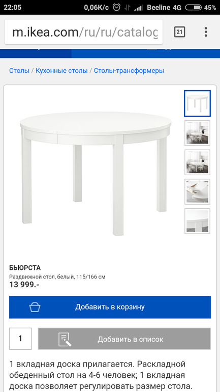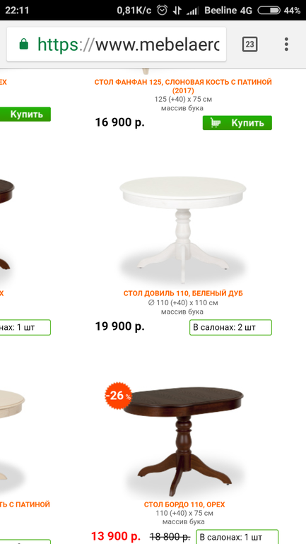 Очень долго искала тоже круглый белый около 1 м диаметром. Все от 15 тысяч и с вензелями-завитушками попадалось (( Нашла стол Юма, он, правад, не белый, слоновая кость - но зато цена очень приятная. Каркас береза, столешница МДФ.