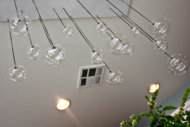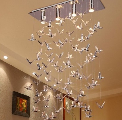 Правда, это светильник, но можно просто купить такие прозрачные фигурки птичек или фабочек-стрекоз и повесить на леске.