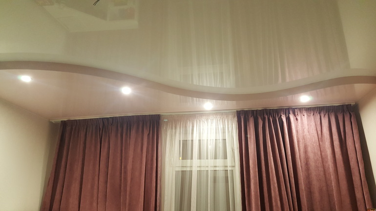 не делайте глянцевый. Это уже, так сказать, пережиток прошлого)) Ну и просто он смотрится не красиво. Если хотите натяжной, то матовый. Можно для интимного света купить бра/торшер. Это не перегрузит потолок, и добавит уюта.