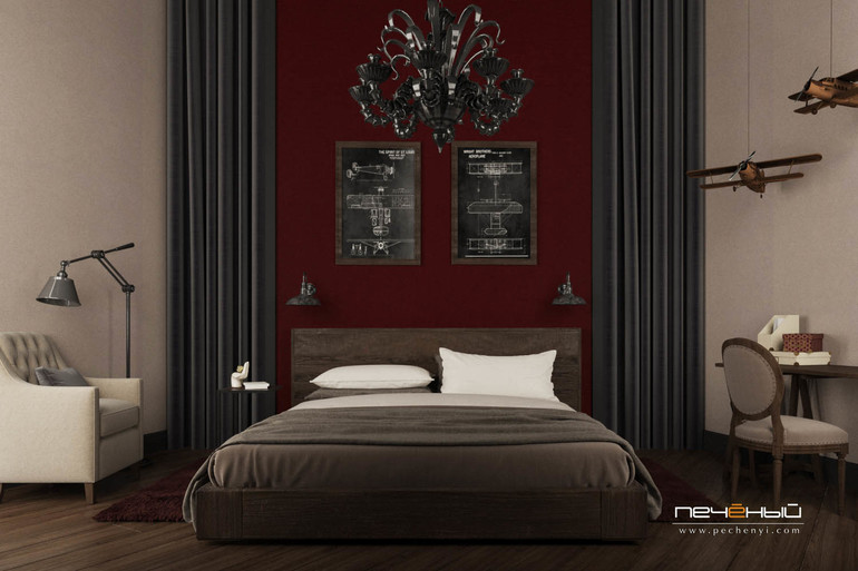 Здорово получилось с тайной комнатой-гардеробом: идея спрятать шкаф и полки за изголовьем кровати очень понравилась заказчику. Он сказал, что только ради этого решения стоило обратиться к дизайнеру. :) А ещё нам нравится люстра в стиле ар-деко - такая контрастная по отношению ко всему интерьеру, отличный получился акцент!