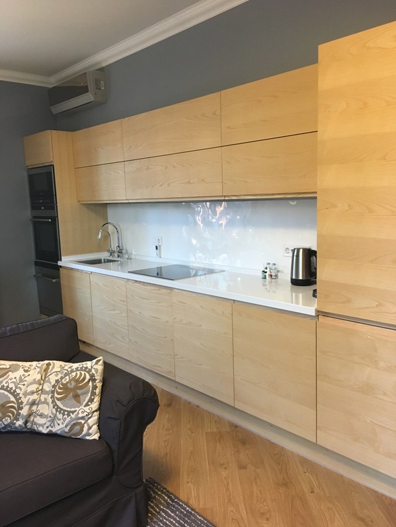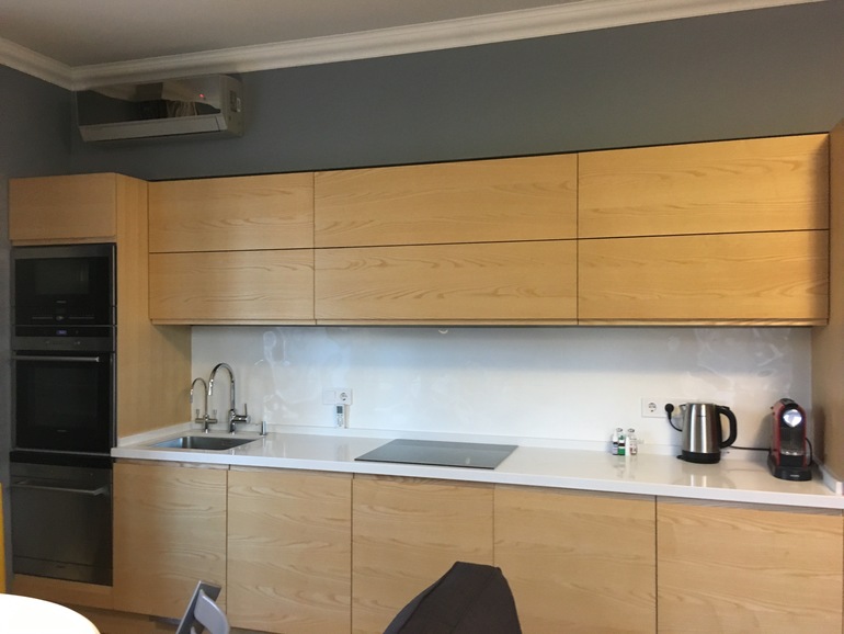 Нашла того же производителя в инстаграме кухню, там фасады по 120 см... Дизайнер уверяет, что блумовская фурнитура рассчитана на 120 см...Разбивали фасады по 60/50/50/60см, что-то не очень смотрится.