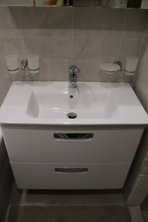 Ванная, раковина, зеркало-шкаф, тумба под раковину и унитаз - Roca