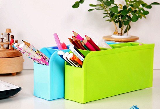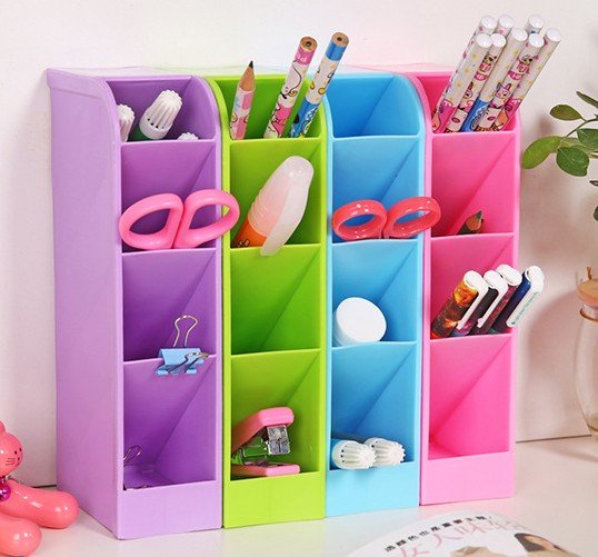 Тоже думаю все время как бы все компактнее организовать, пока часть лежит в комоде на двух полках - в контейнерах из икеи и фикса, еще вот такие карандашницы нашла, одну заказала на пробу - пока жду, для письменных принадлежностей и кистей мне кажется должно быть удобно для стола.