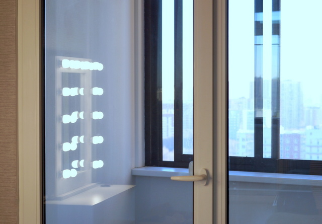 А ранним утром или вечером, когда на улице уже темно, эти лампочки отражаются и в балконном окне, образуя длинный-предлинный коридор, который уходит далеко вдаль и залит ярким светом. Сюрреалистично!