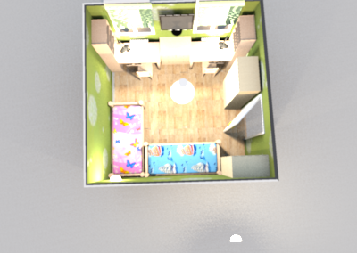 К сожалению, две кровати вдоль стены не становятся. Кровати 205*95. Кроме кроватей другой мебели нет пока, в планах изготовление на заказ 2 стола угловых с закругленной столешницей плавно переходящей к платяному шкафу.