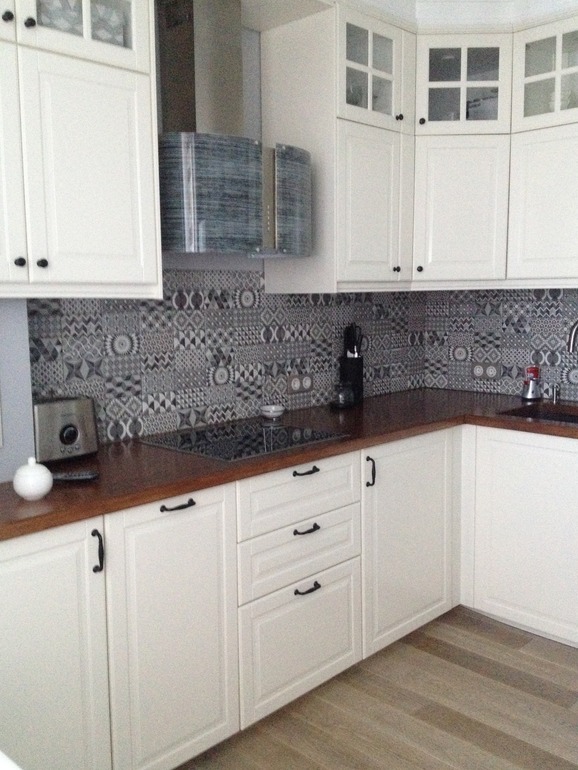 Так как вытяжка была бело-черная, то решено было заказывать белую кухню.