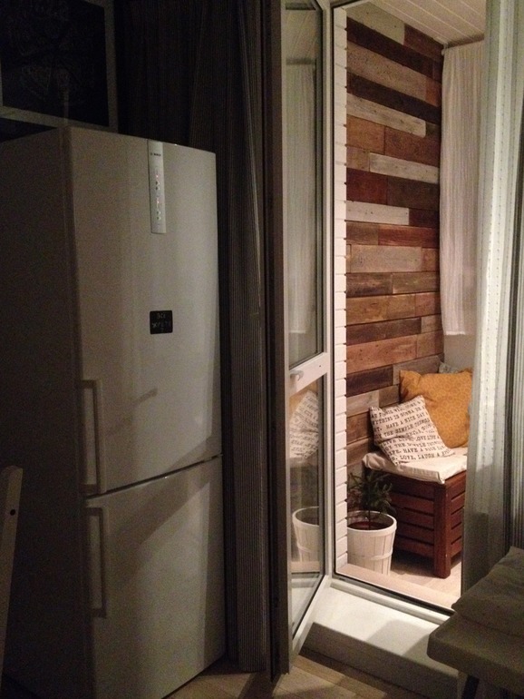Из кухни идет дверь на балкон. Нижняя секция двери была изначально глухая, но мы поменяли пластик на стекло, чтобы было больше света. Кстати, несложная процедура: заказали стеклопакет и мой муж сам его вставил. В кухне сразу стало светлее.