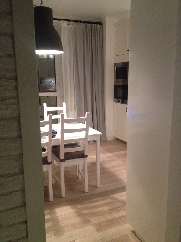 Это был длинный рассказ о правой стороне кухни. А теперь переходим к противоположной. Ну, тут всё несколько хуже. Эта сторона делалась уже в самом конце ремонта, на исходе сил и средств. Результат меня не совсем устраивает. Бесит стол и стулья, т.к. смотрятся очень скучно и неинтересно, но купили то, на что хватило денег в конце ремонта.