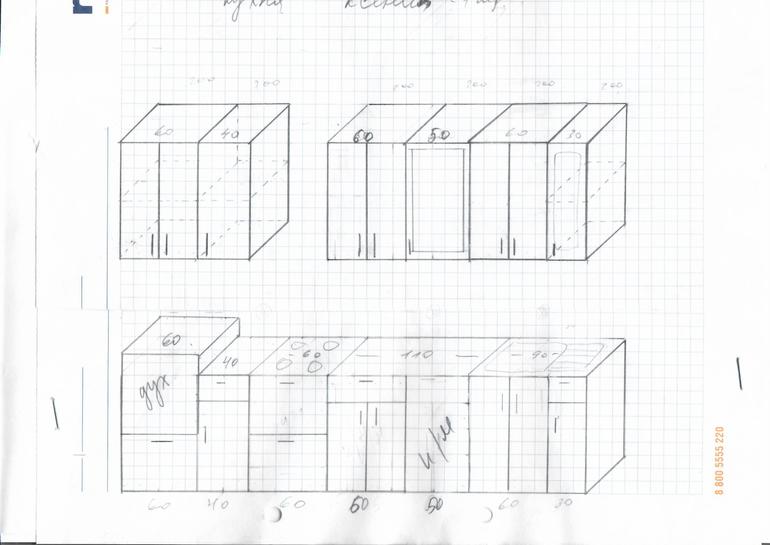 Так как переезд уже не за горами, а кухня нужна, решили заказать временную, недорогую модульную. Проект ниже