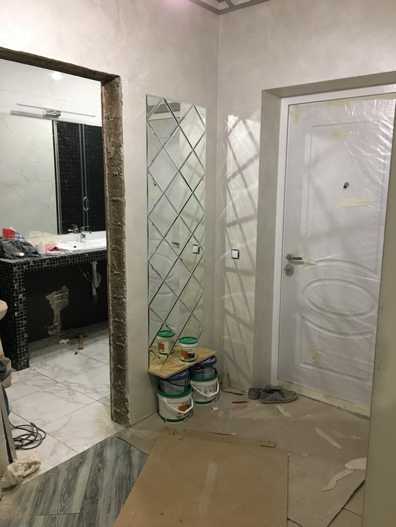 Здравствуйте всем. Позавчера установили входную дверь и теперь у меня проблема в откосах. Я не знаю как их сделать. Дом панельный, толщина стены небольшая. Видела, что сразу устанавливают с откосами, но как-то мне кажется не очень красиво будут сочетаться темные откосы со светлыми межкомнатными дверями. Цвет дверей- белёный дуб, а цвет входной двери тёмно-коричневый, а по центру светлый как белёный дуб и ещё неширокое зеркало. Почему-то никак фото не и могу загрузить. Буду пробовать с компьютера. Как считаете, уместны ли светлые откосы и наличники вокруг входной двери? Ещё стена с бежевым кирпичиком рядом пока недоделана, коричневых обоев не будет. Или может подскажете как поступить в моей ситуации?