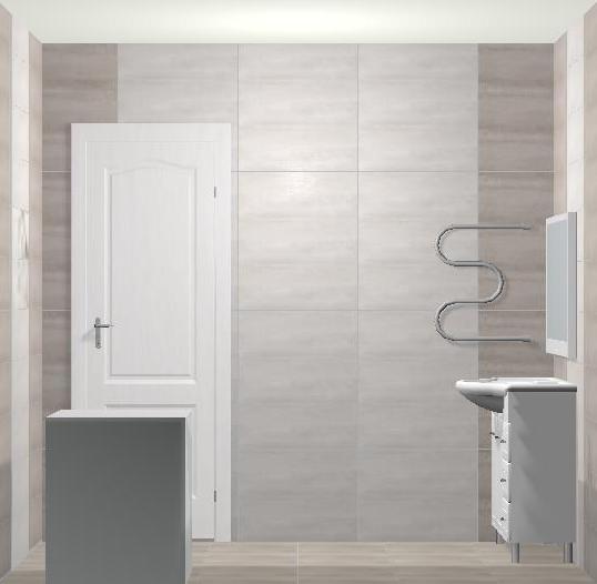 Можно сделать чуть по-другому. Там, где зеркало, протдлить темную плитку на один ряд по смежной стене. И в противоположном углу после стиралки тоже заворот темной плитки на один ряд, а дальше светлой.