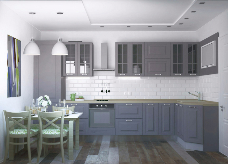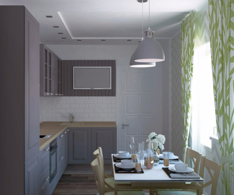 Здравствуйте, есть 2 варианта декора зоны тв: продолжение фартука из плитки "кабанчик" либо фасадная панель, изготовленная совместно с кухонным гарнитуром и завершающая его линию.