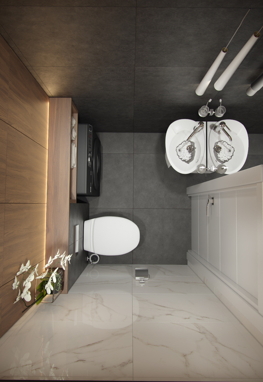 У нас небольшой совместный санузел, положили плитку 45/90. Очень нравится, и швов меньше. Мне кажется, чем меньше помещение, тем лучше больше плитку.