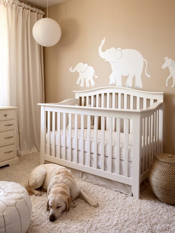 Можно наклейки или рисунки через трафарет нанести на стену, картинки в рамочках вот здесь посмотрите http://www.remontbp.com/vybiraem-detskuju-krovatku-v-komnatu-dlja-novorozhdennogo/