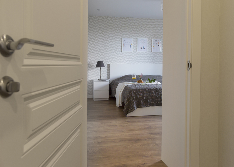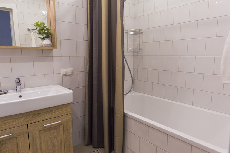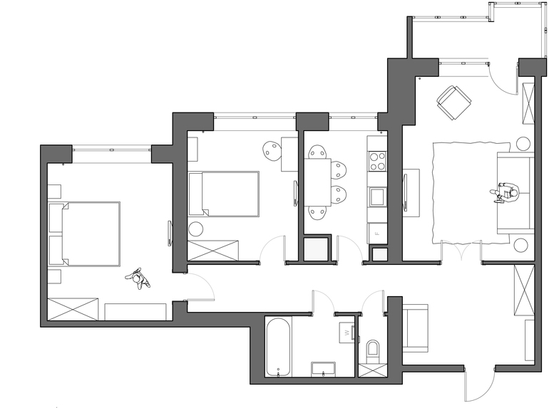 Соответственно, имеем просторную прихожую, гостиную, кухню, спальню, детскую, туалет и ванную. Общая площадь квартиры 85м2.
