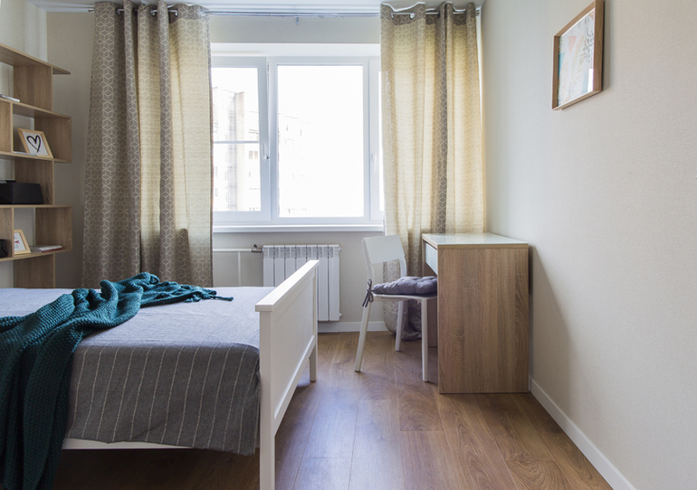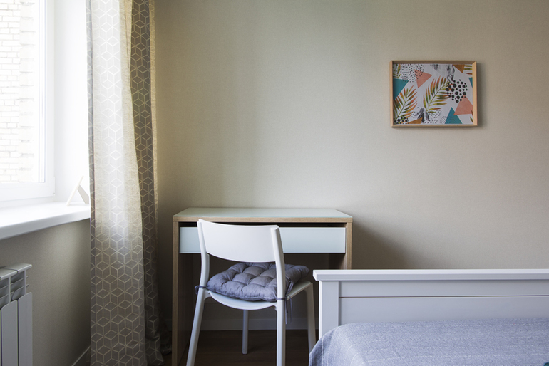 Детская комната. Необходимо было предусмотреть рабочее место, шкаф для одежды, кровать.