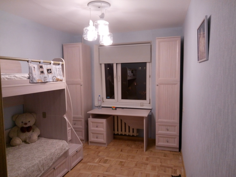 У меня трёшка. Вот нам можно совмещать. Спальня наша, детская и зал с кухней, где бодрствующий человек может посидеть. Такое помещение должно быть.