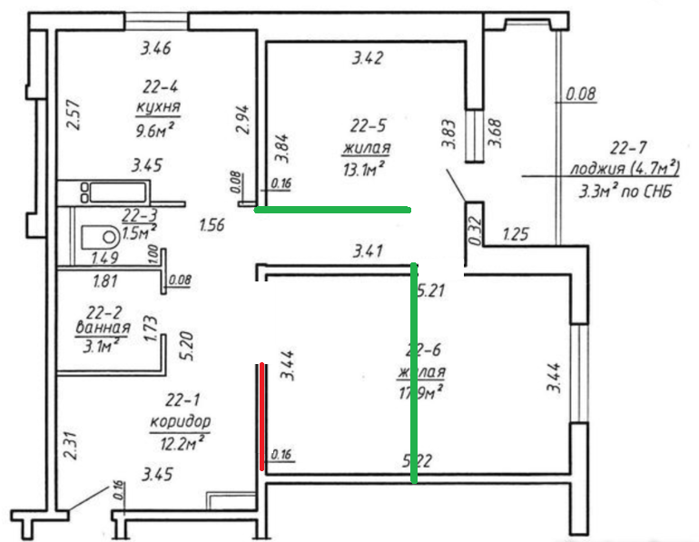 Да, тоже очень разумная идея, мне нравится, но вроде как нельзя ничего менять. В большей комнате думала просто уменьшить дверной проем до стандартных 90 см. Все-равно вторая половина все время закрыта, а так в большой комнате получится угол шире, можно делать гостинную-спальню.