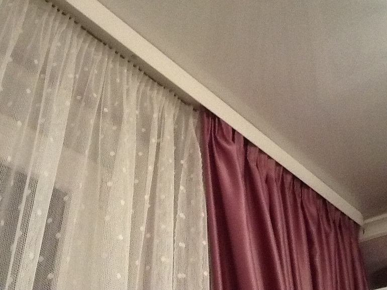- намного дешевле купить обычную пластиковую потолочную шину на 3 ряда. Более менее красивые настенные карнизы стоят намного дороже.