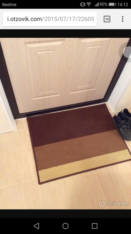 У нас обычный из Икеи, на резиновой основе, но пришла идея сделать на резиновой основе галечный коврик, особенно актуален в зимнюю погоду. Можно будет его мыть по мере загрязнения, и галька сейчас продаётся любого цвета, можно под любой интерьер подобрать.