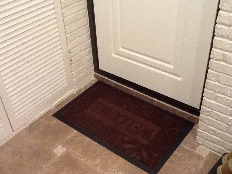 У нас нет коврика. На полу плитка, тёплый пол. В коридоре в шкафу стоит пылесос ( моющий), поэтому когда грязь или песок сыпется с обуви сразу мою. Обувь стоит в шкафу (отдельная секция под обувь, шкаф пакс с полками металлическими для обуви)