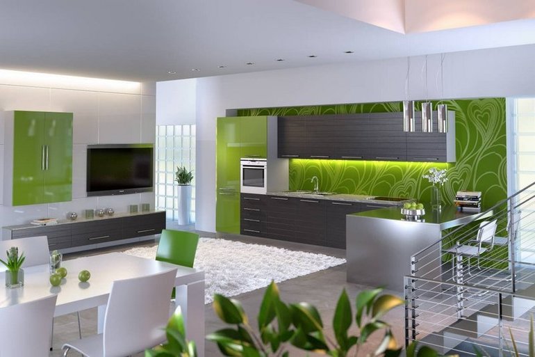 можно фартук кухонный сделать вырывиглазным каким-нибудь) И обои в зоне стола тогда к нему в пару, а остальные светлые