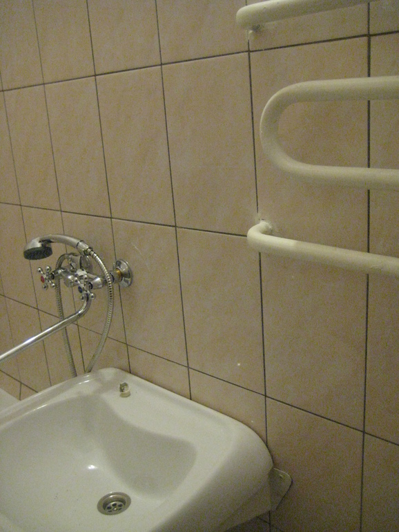 Самые дешёвые раковина, плитка и смеситель, отсутствует затирка (в швах просто плиточный клей). Ну что я вам рассказываю, все же знают, как это выглядит))