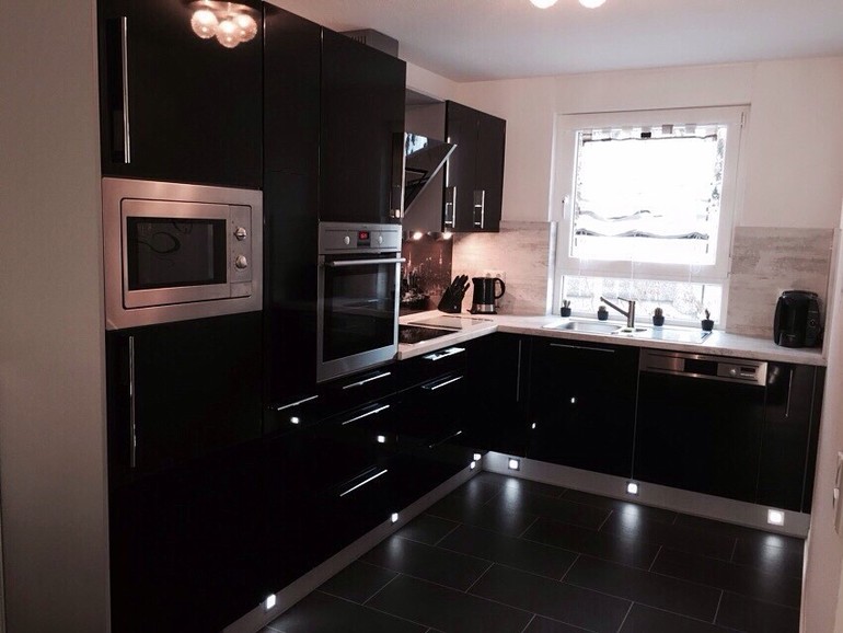Тут чёрные шкафчики матовые, софт тач (по типу как телефон нескользящий), тогда отпечатков не видно))